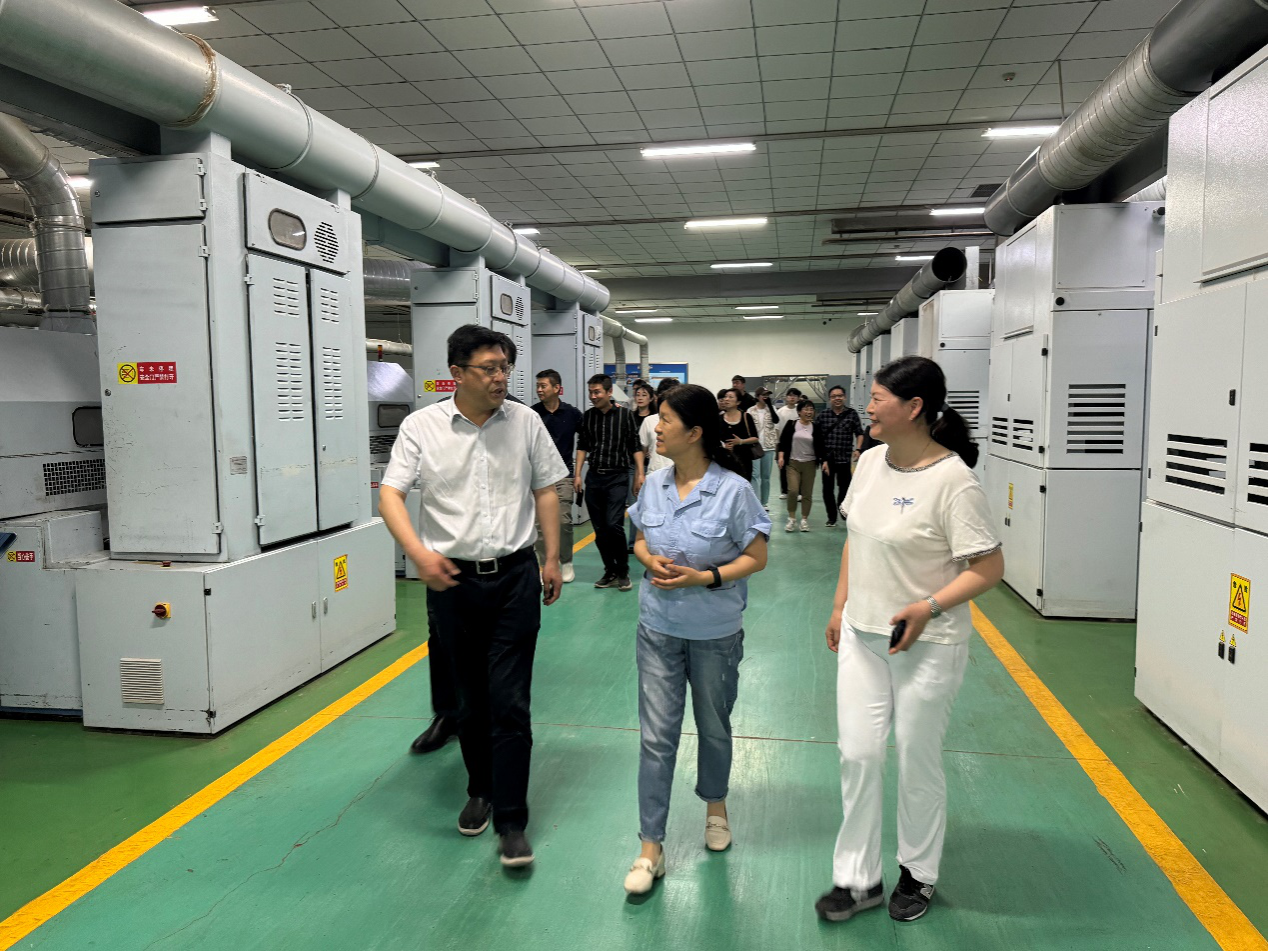 校友、咸阳纺织集团一分厂党总支书记、厂长杨雯静带领参观赵梦桃班组