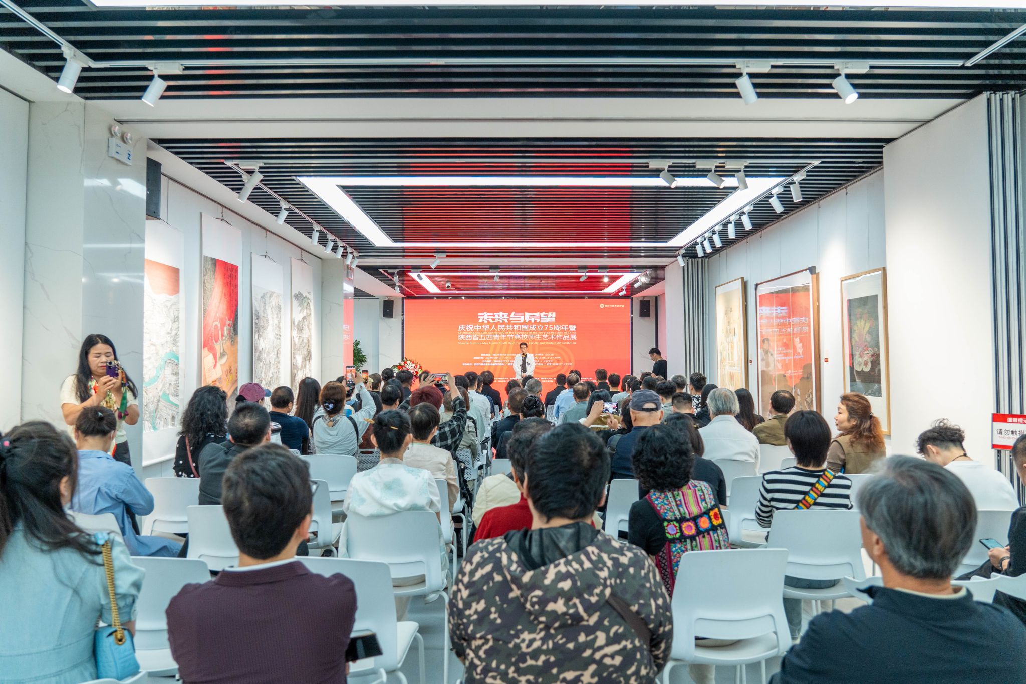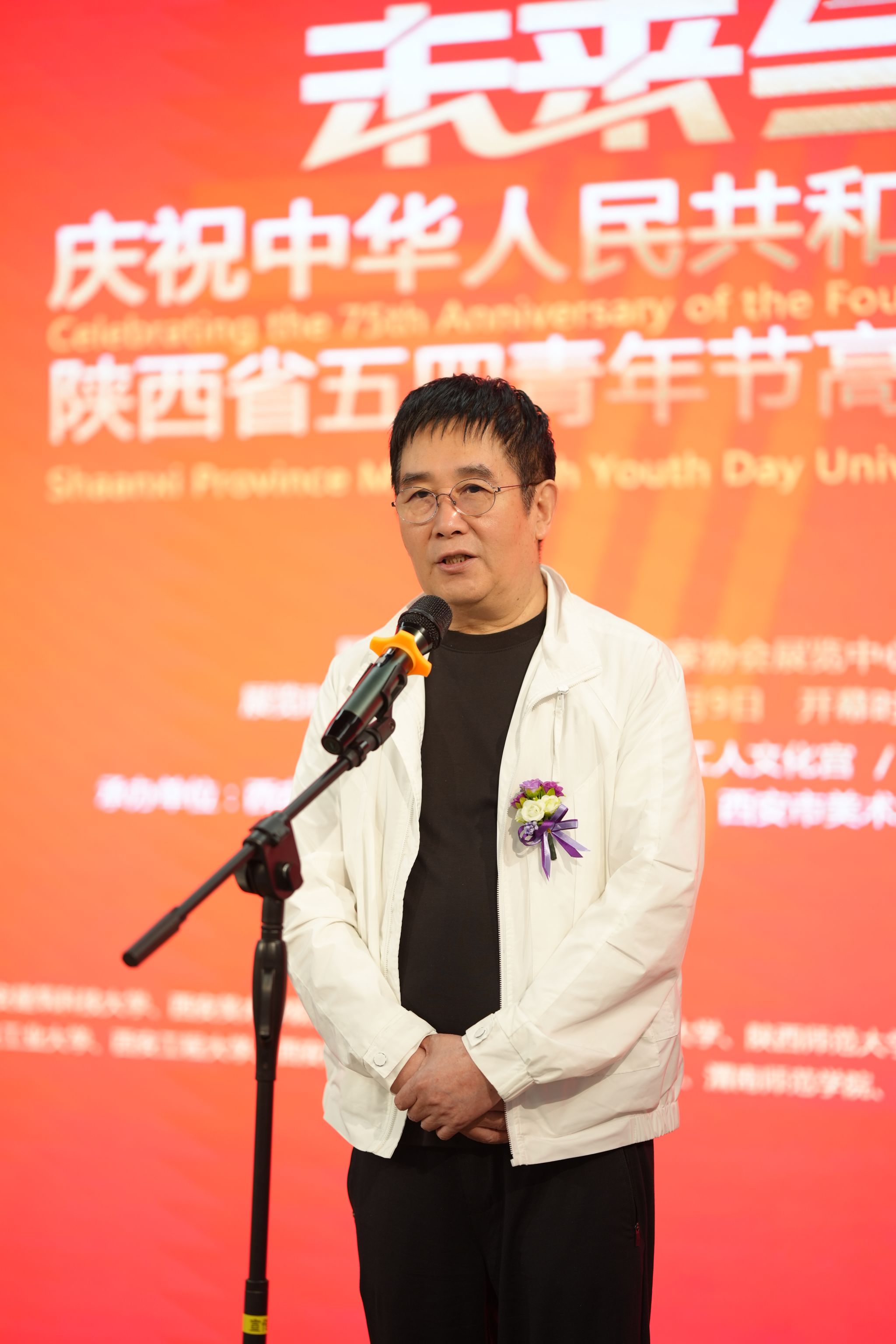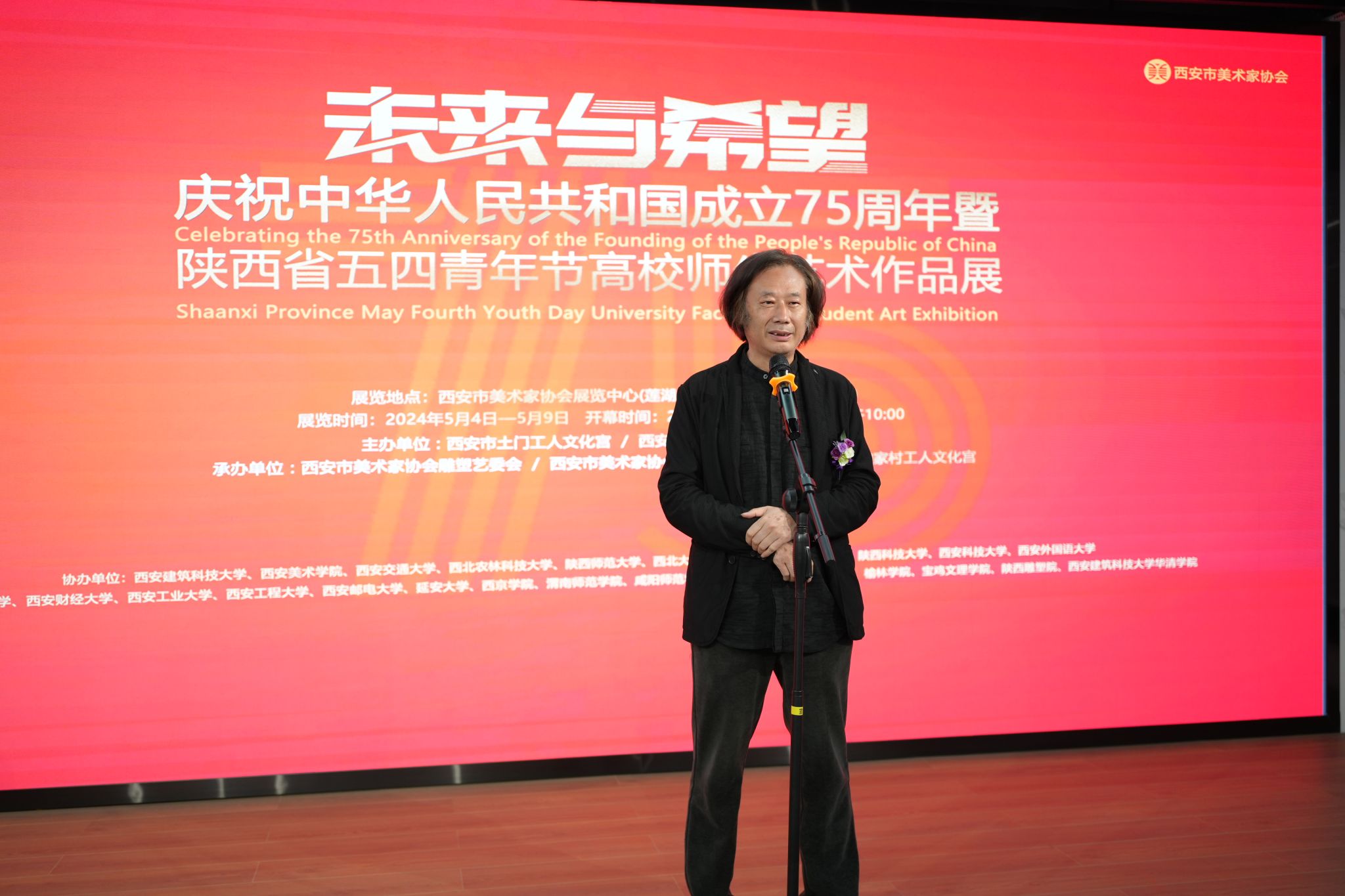 5月7日上午十点,“未来与希望”庆祝中华人民共和国成立七十五周年暨陕西省五四青年节高校师生艺术作品展在西安市美术家协会展览中心展出。陕西省美术家协会副主席蔺宝刚,西安市美术家协会主席杨霜林、西北大学艺术成人影视片