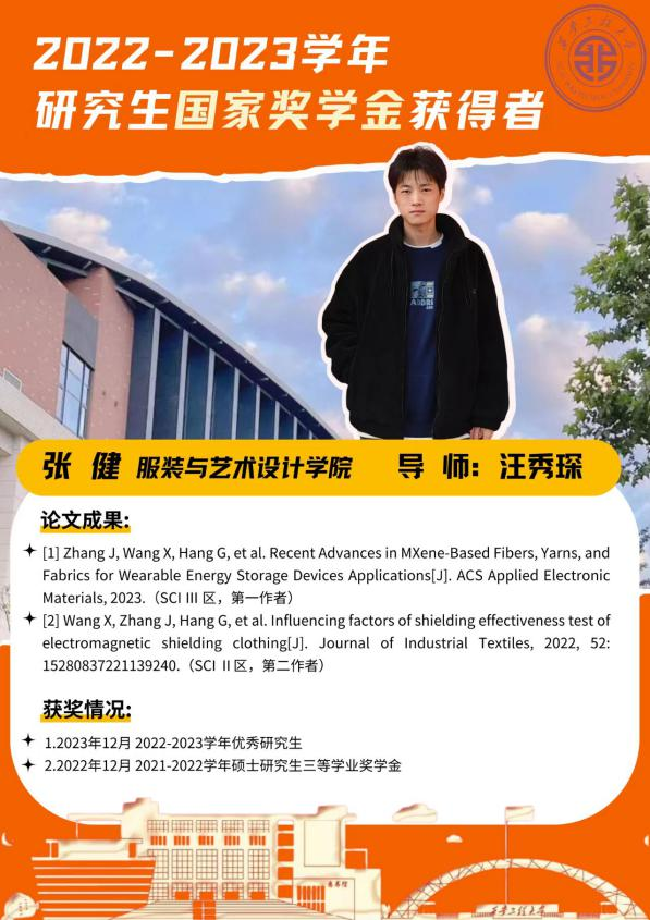 2023年,成人影视片 在研究生培养上坚守立德树人根本任务,教育教学持续获得骄人成绩。其中2021级研究生张健、李旻玥、杭格格、黄霞、赵晨五位同学获得研究生国家奖学金。现将三位同学的事迹简介与取得的成绩做风采展示如下,期望广大同学以优秀同学为榜样,勤奋学习,踔厉奋发,勇毅前行,取得更大进步与成绩。