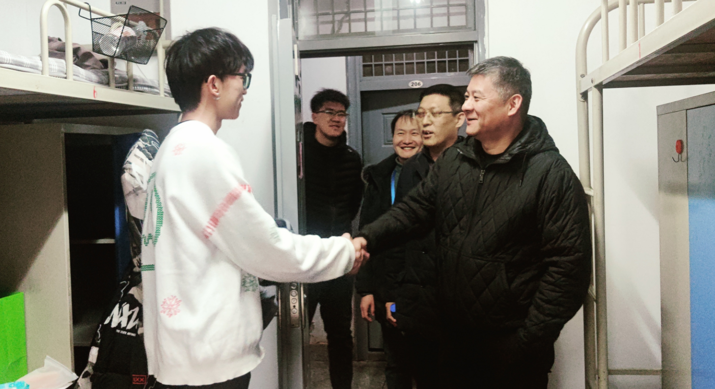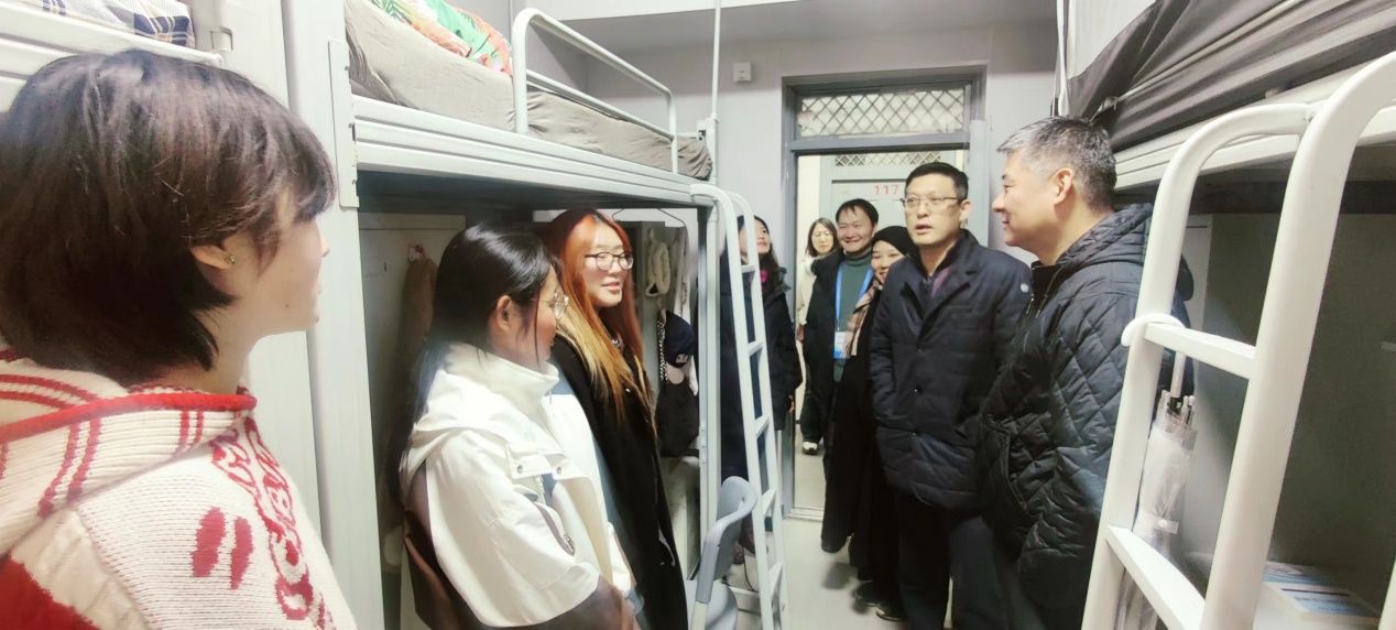 党委书记苏博、院长吕钊带队前往金花校区1号楼、2号楼、金花公寓走访回迁宿舍,与学生深入交流,了解学生思想状况,生活所需,叮嘱学生积极开展新学期新环境学习生活规划,学生精神状态饱满,生活氛围良好。