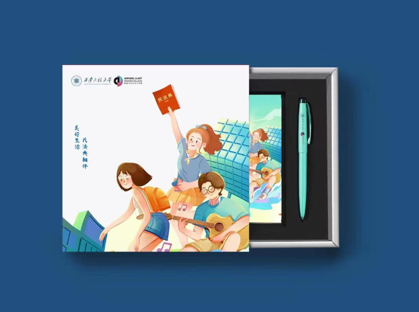 先后开展了一系列法治文化主题活动。选送小品《法律进社区之步步惊心》在会上做汇报演出,主要讲述大学生进社区进行法治宣传,帮助社区老人识别诈骗的故事。参演人员用诙谐的台词和生动的表演,获得全场阵阵掌声。同时,展示了原创设计的带有民法典元素的文化衫、手提袋、书籍包装等文创产品,达到了极佳的法治宣传效果。
