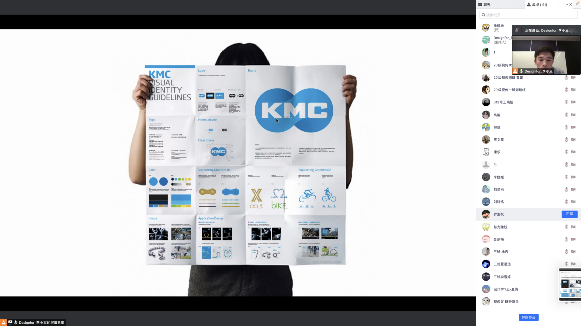 李小义老师从不同的商业项目和维度出发,分享他作为平面设计师在实践中身份的转换以及在设计中的专业经历,以图文并茂的形式对他从业之路中具有代表性的设计案例进行了生动细致的解读,李小义老师通过对部分商业品牌创意方法的分享,为我们带来了“360度全方位”的设计思考理论,从人的五感出发去解析品牌,学会看穿品牌的本质。同时还讲解了作为一个优秀的品牌设计师所需要经历的积累与历练。使同学们进⼀步感受到优秀的品牌设计对于企业来说的重要性和必要性。对同学们进⼀步理清品牌设计的策划及创意思路,设计及工作⽅法,提供了有益的借鉴。使同学们能够站在⼀个更⾼的起点去学习品牌设计。