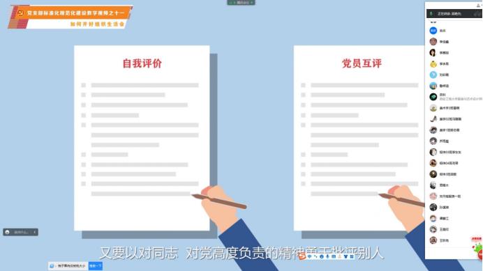讲座结束后,参会人员共同观看学习了陕西省委组织部制作的《党支部标准化规范化建设教学视频》第10-12集:如何开展主题党日、如何开好组织生活会、如何做好民主评议党员工作。其余教学视频要求院党委委员、各党支部书记通过自学完成,通过学习提升党员干部抓党支部工作的能力,把党支部建设同成人影视片