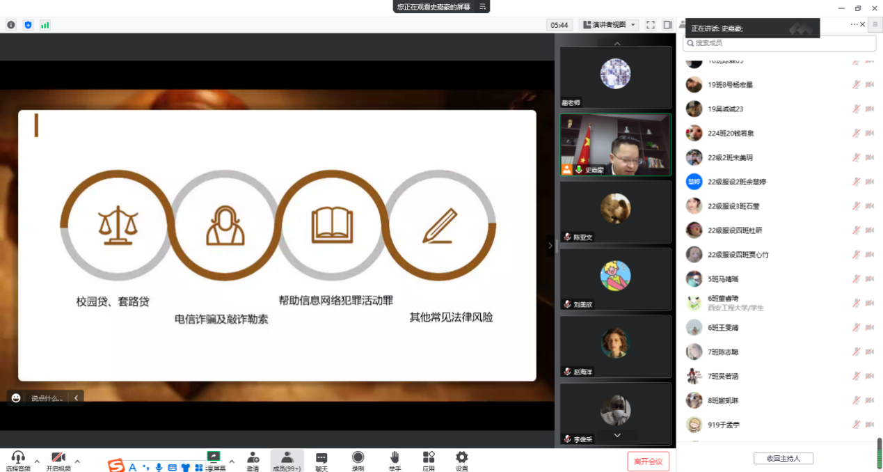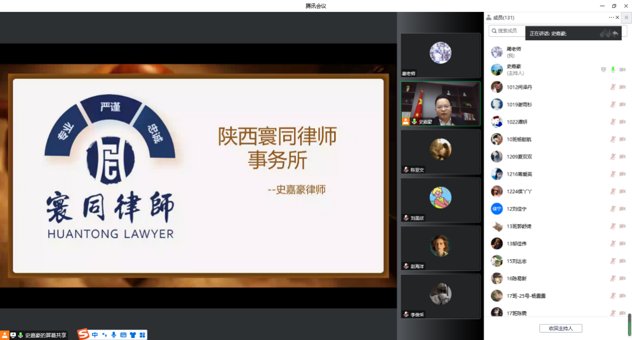 学工办特邀陕西寰同律师事务所创始合伙人史嘉豪律师利用腾讯会议为成人影视片