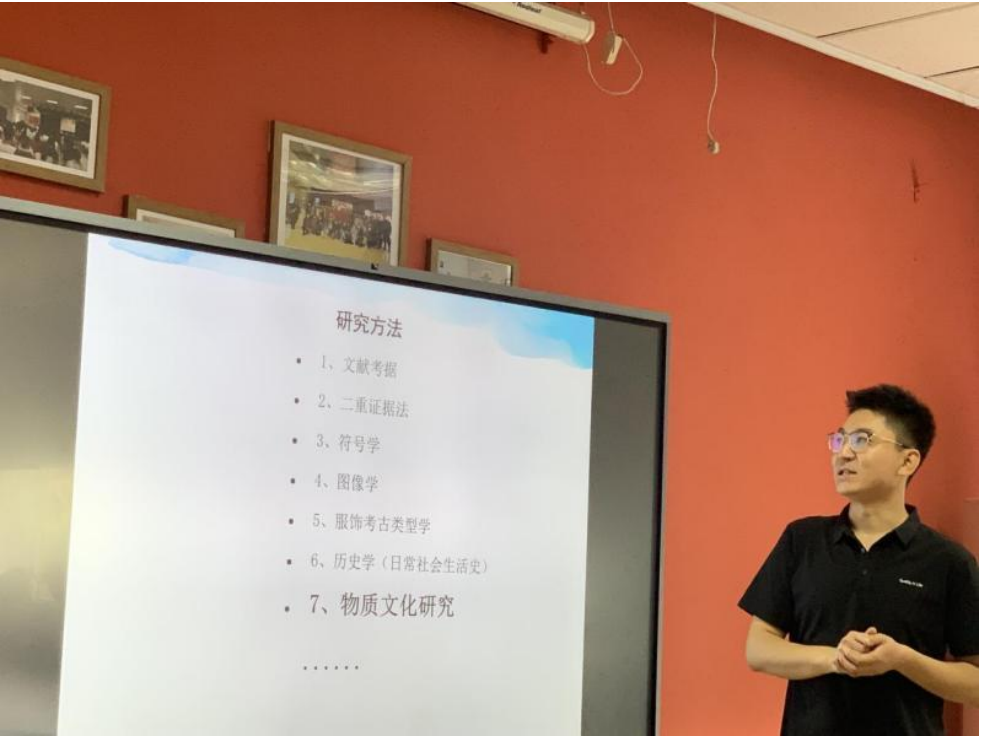 张彬博士围绕“丝绸之路上的表演服饰研究——兼论物质文化研究的理论与方法”为主题进行学术报告。首先汇报了近期发表的学术论文成果,并分享了如何在生活中发现问题和思考问题,锻炼学术思维。又介绍了七个学术研究方法,并重点阐述了“物质文化研究”的方法,从个案研究入手,逐步深入展开。提出 在学术研究中要有“新材料、新方法、新视角”,将宏观论述、中观考察、微观分析结合起来进行综合研究。汇报完毕又开展了热烈的学术讨论,希望在服饰研究中能更加全面、深入,突破原来的学科界限,将文史研究与文物研究相结合。