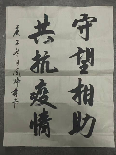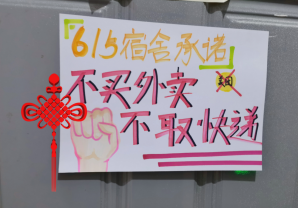 团总支组织了以宿舍为单位书写宿舍战疫宣言座右铭,绘制防疫海报等展现积极向上风貌的宿舍文化活动。