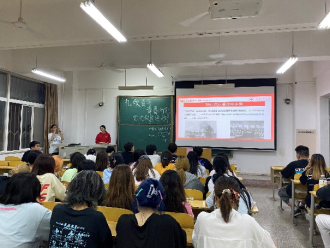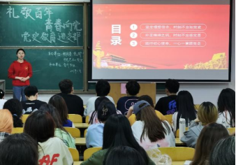 、校青听学社承办。辅导员王盼在活动前进行动员。他说:“党的历史是最生动、最有说服力的教科书,希望各团支部要把习近平总书记在党史学习教育动员大会上的重要讲话精神落到实处,全体团员青年要学党史、强信念、跟党走。”随后,10名宣讲员着统一红色制服,青春激昂地展开声情并茂的宣讲。从“学百年党史,悟红船精神”,到“‘初心赴使命,热血写春秋’的革命年代共产党员”;从“社会发展史”到“改革开放史”;从“总结脱贫攻坚经验,弘扬脱贫攻坚精神”到“实施乡村振兴战略” ……每一间教室的宣讲现场,既有生动的故事,又展示蕴含其中的道理,响起阵阵掌声。团总支书记马薏雯点评:“今晚的自习教室‘含金量’满满。同学们认真努力的‘淘金’身影让我深感欣慰。这次活动意义非凡,既是对马克思主义成人影视片