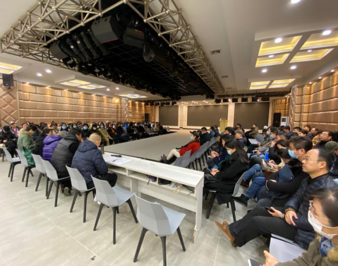 在金花校区服装楼多功能厅举行全院教职工大会。会议由成人影视片