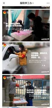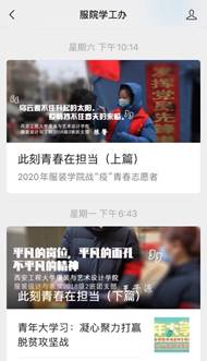 学生工作官方微信平台“服院学工办”推出上、下两期“此刻青春在担当”一线防控志愿者线上宣传表彰推文。以带入感强烈、体现学生志愿者一线工作的海报和他们的具体名单,展现成人影视片