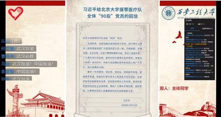 参加一线防控工作的志愿者代表运用钉钉APP开展了“抗击疫情”学习雷锋主题线上活动。与会人员通过观看抗疫新闻视频了解防控工作实时情况;通过视频讨论学习习近平总书记给北京大学援鄂医疗队全体“90后”党员的回信;通过经历一线防控工作的志愿者代表的发言分享来真切感受一线工作的重要与辛苦,从而更加坚定全国人民凝心聚力战胜疫情的决心。