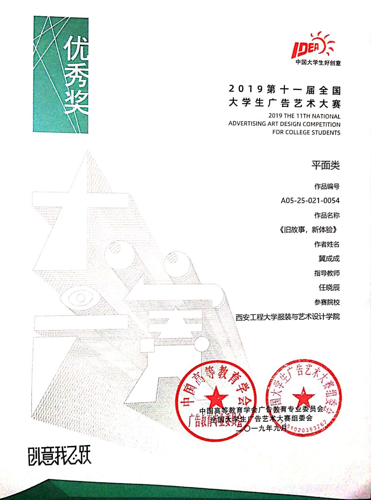 11月23日,全国第十一届全国大学生广告艺术大赛落下帷幕,我院学子在本届大赛中荣获佳绩,由我院任晓辰老师指导的学生冀成成作品《旧故事,新体验》和学生张亚楠作品《责任与担当公益海报》荣获国家级优秀奖。同时学生袁明慧、展爱敏、何浩杰、雷金康等同学的设计作品荣获陕西赛区的一等奖10项、二等奖7项、三等奖13项和优秀奖34项。本次大赛不仅充分展示了成人影视片