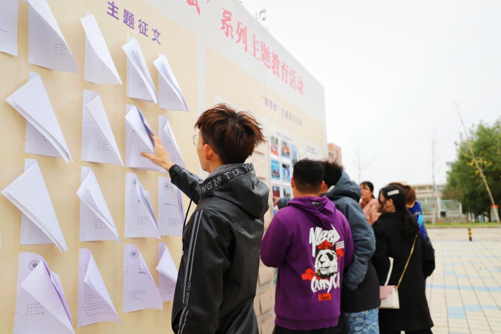 同学们纷纷在临潼校区“理想赋”主题展板观看成人影视片