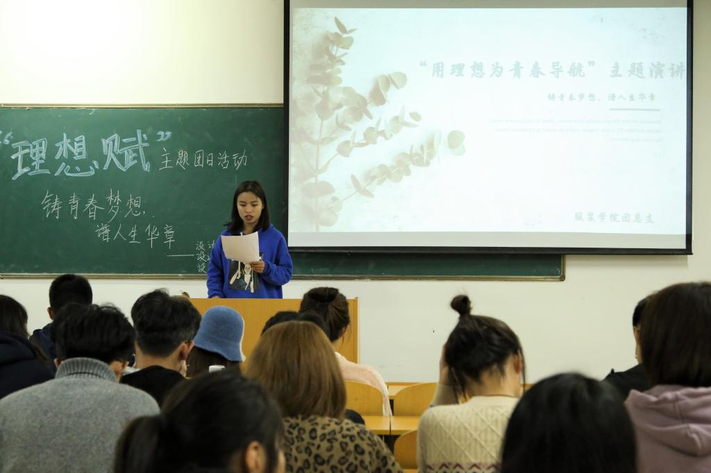 团总支组织2019级班团支部通过书写寄语、主题演讲、分享会、短视频大赛、创意合照等灵活多样的形式,深入开展“理想赋”主题团日活动。
