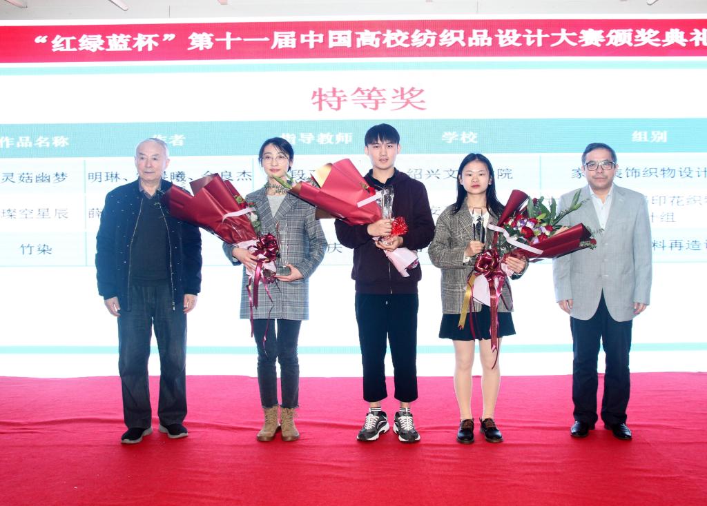 中国工程院院士蒋士成、中国纺织服装教育学会会长倪阳生为我院特等奖选手颁奖