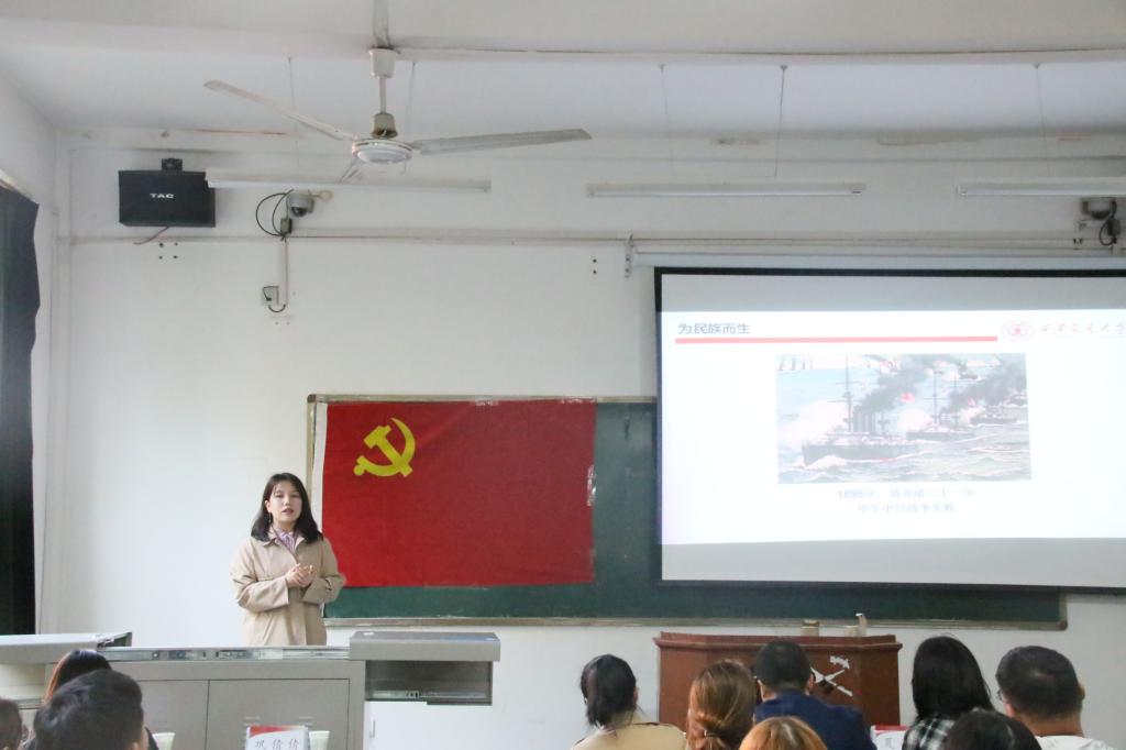 研究生第一党支部书记孙晨倩主持,西安交通大学党委宣传部副部长张清华,党委宣传部理论教育主管陈晨,成人影视片