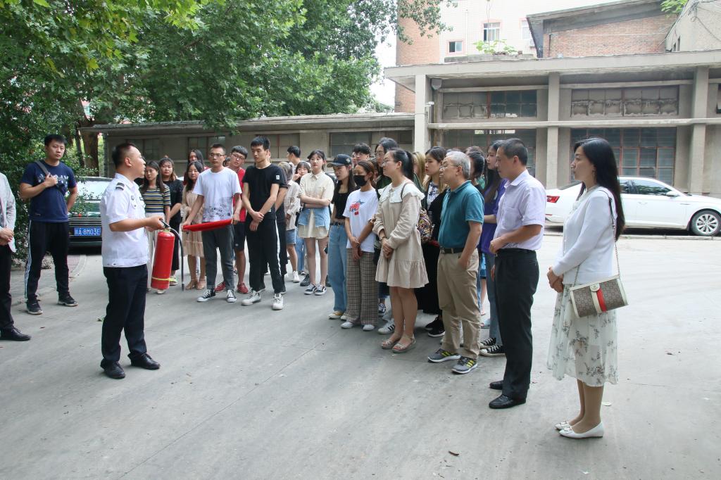 讲座结束后,大家又前往图书馆南侧开阔地,现场进行消防器材演练。张警官为大家讲解了干粉灭火器等消防器材的具体使用方法并进行示范。李筱胜书记亲自叮嘱同学们消防器材的正确使用方式。接下来,由同学们上手体验使用消防器材。张警官和李筱胜书记现场纠正部分同学使用消防器材的错误。通过上手使用,同学们掌握了正确使用消防器材的本领,为做好消防工作打下了基础。