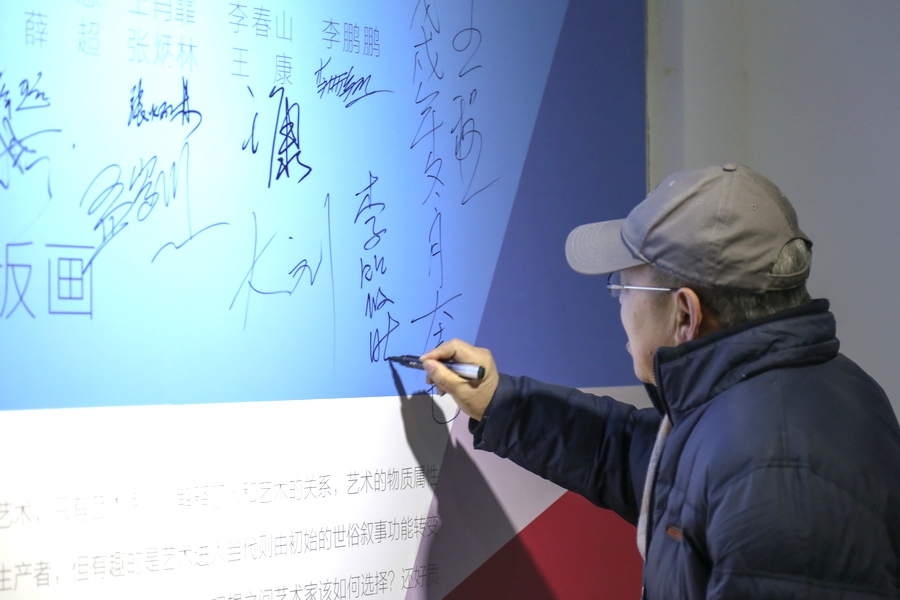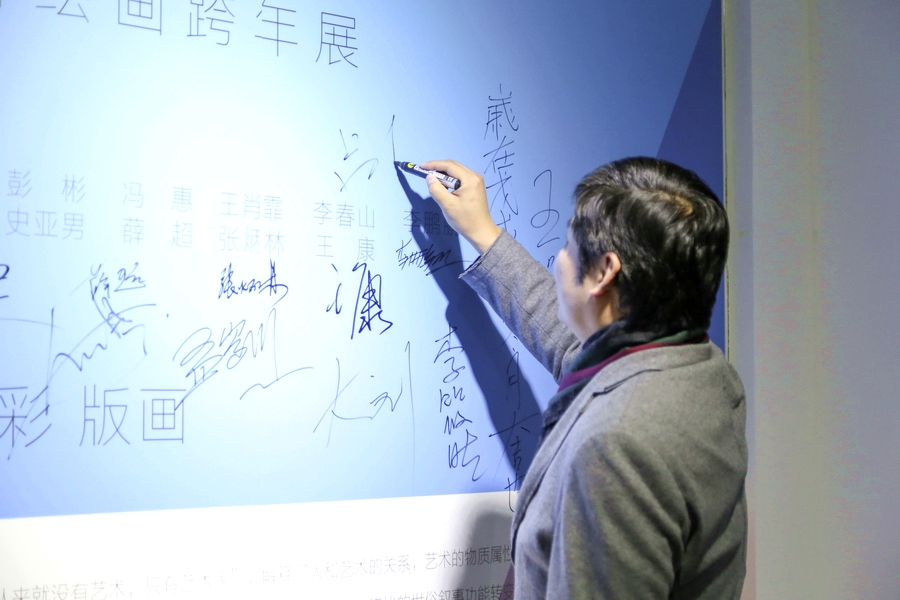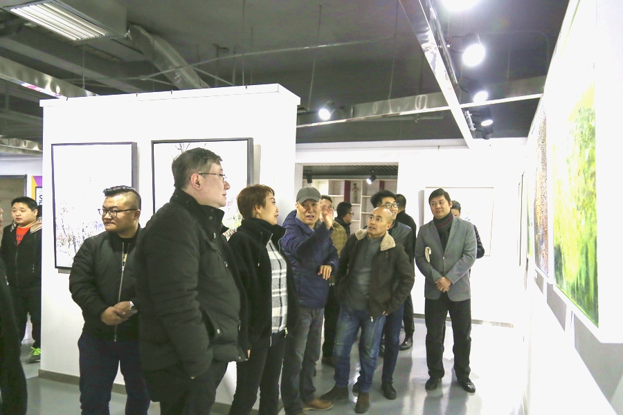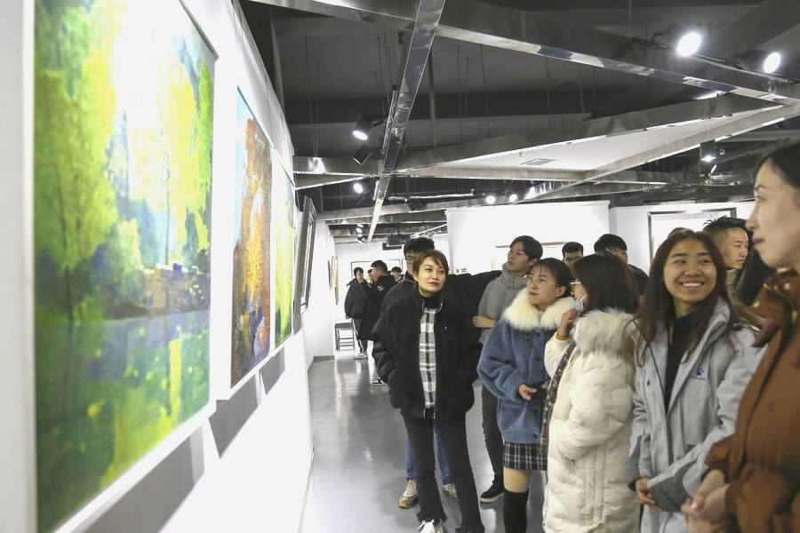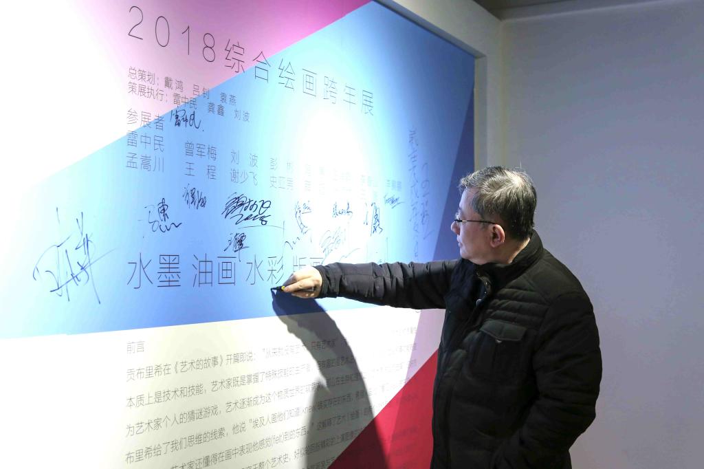 院长戴鸿、党委书记李筱胜、副院长袁燕、副院长田宝华及创意产业园主任吕钊等领导嘉宾莅临现场,与造型艺术系参展教师和6位特邀校外艺术家共同参加开幕式。造型艺术系参展教师冯惠担任主持人,戴鸿院长、李筱胜书记、吕钊主任对本次跨年展给予充分的肯定和鼓励,同时对教师和校外艺术家在专业合作交流上提出期许和要求,鼓励专业教师要更多的举办类似学术活动,联合优秀校外艺术家加大专业交流力度、增加展览密度以增强教学专业效果。造型系教师代表和校外艺术家代表也分别做简单发言,对画展的形式、目的提出了建设性的意见,开幕式结束后师生一百余人参观了展览。