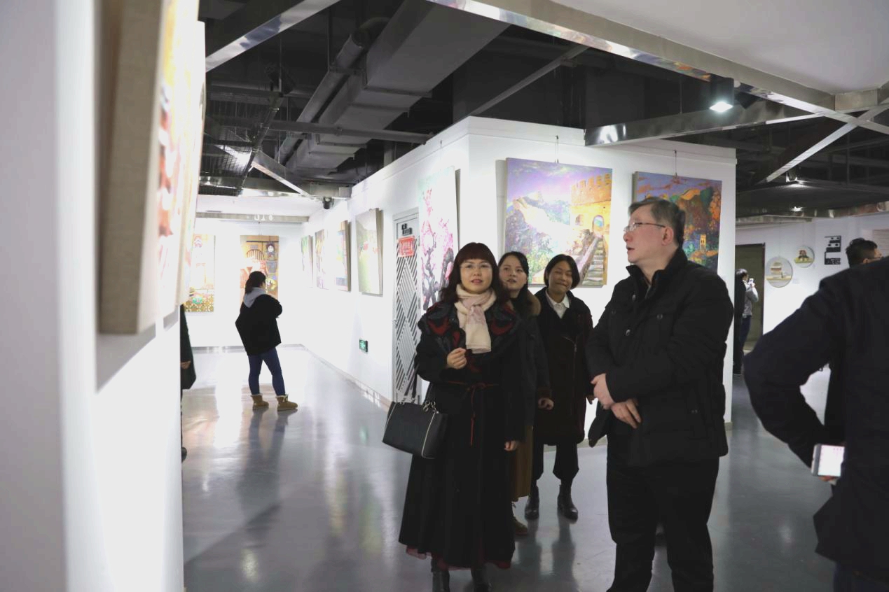 时尚文化创意产业园,并在展览现场和陈欢欢同学深入交流油画的创作历程。