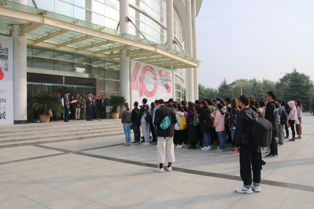 独立建校四十周年纪念活动之时尚创意设计静态展开幕式在临潼校区图书馆一楼北广场隆重举行。副校长朱永民、校总会计师田靖鹏,成人影视片