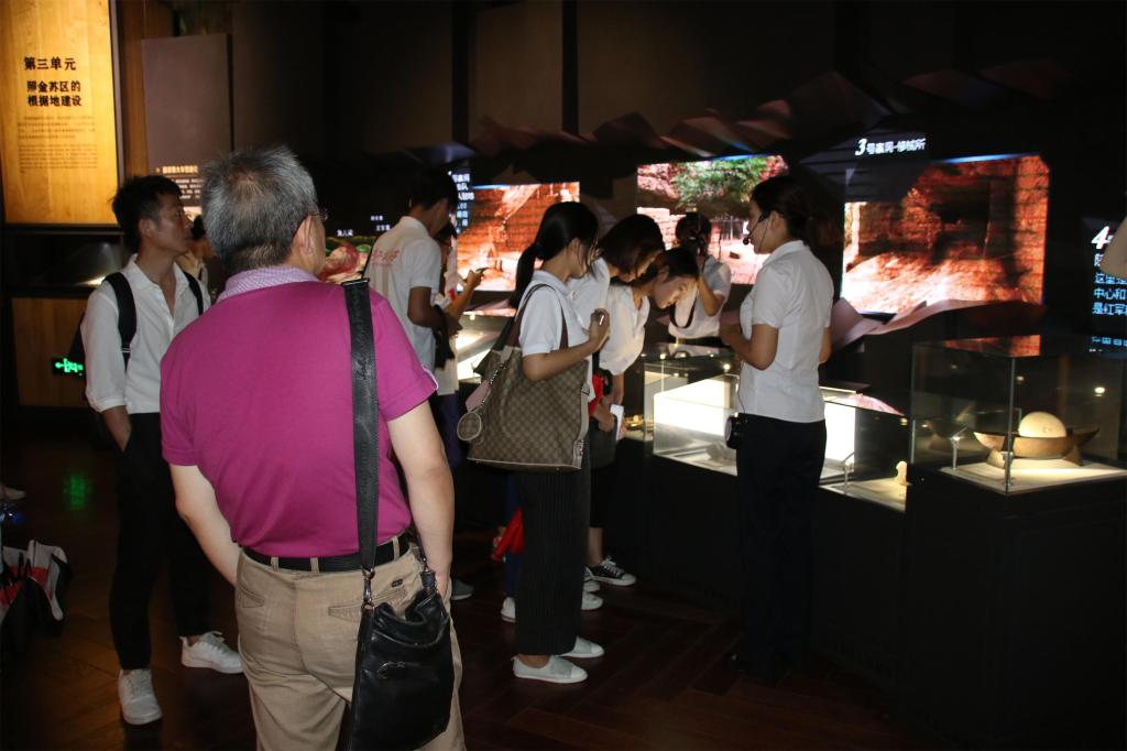 “日照锦衣,遍地似金”,早上十时许,支部成员来到革命圣地照金镇。首先在陕甘边革命根据地照金纪念馆广场上,党委书记李筱胜作为领誓人,支部全体党员举行了庄严肃穆而简短的入党宣誓仪式,重温入党誓词,激发起支部全体教师党员意识、宗旨意识和模范意识,并向纪念馆赠送师生所做学校与纪念馆写实版画。接着全体支部成员参观了陕甘边革命根据地纪念馆,在讲解员生动而详实的讲解下,支部成员仔细聆听学习,详细了解了陕甘边革命根据的创建历程和革命斗争历史,深入了解了与“南瑞金”相对应的“北照金”在全国土地革命战争中的重要地位,全体党员更进一步了解了刘志丹、习仲勋等老一辈革命家的英雄事迹。最后,全体党员登上馆后台阶,瞻仰雄伟壮观的陕甘边革命根据地英雄纪念碑,并做参观学习感悟发言。