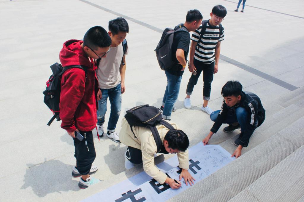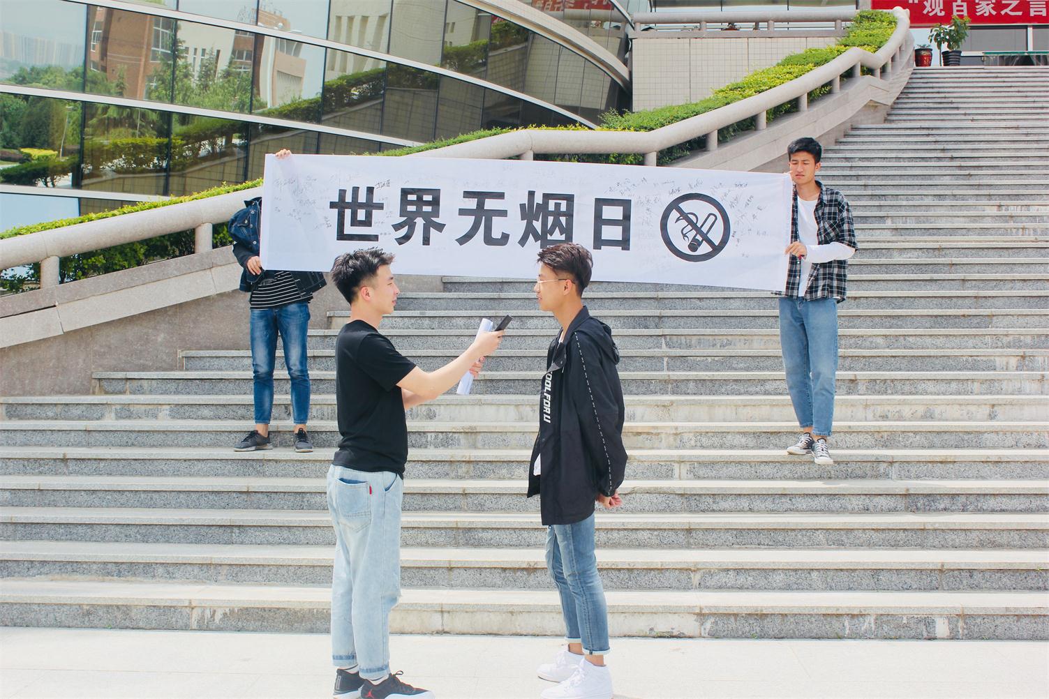 为了强化活动的内涵,延伸活动的范围,让更多同学了解吸烟的危害,用实际行动创建无烟文明校园,当日中午,两个团支部全体同学在临潼校区图书馆附近发起了“自觉拾捡你身边的烟头”公益活动。使广大同学更加积极的加入到了控烟禁烟的行列当中。并用随机采访的方式向路过的同学对进行提问,接受采访的同学积极回答问题并在世界禁言日的条幅上签名,表示了对本次活动的支持。