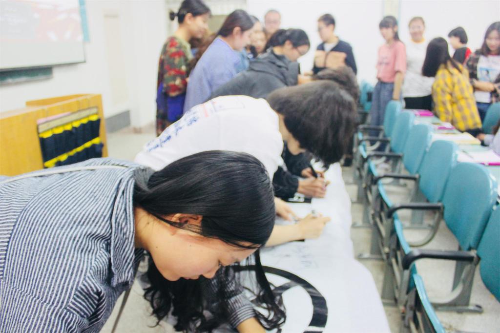 紧接着由马薏雯对本次活动进行了总结。她指出为什么我们需要做这样的活动?首先从社会发展的角度来看控烟禁烟是人类文明发展的总趋势,在北京上海等一线城市已全面实施了公共场合禁止吸烟的规定,控烟禁烟必将深入到广大群众中。其次,从个人发展的角度来看,吸烟影响着自身以及下一代的健康。吸烟是一个不良的习惯。每个不良的习惯拼凑起来会成为一个消极的生活状态,从而影响着四年的大学生活甚至以后的人生道路。老师希望同学们脚踏实地从养成好习惯开始,用积极正面的态度去面对问题,面对生活。最后,由马薏雯和同学们共同在印有“世界禁烟日”字样的的条幅上签名。