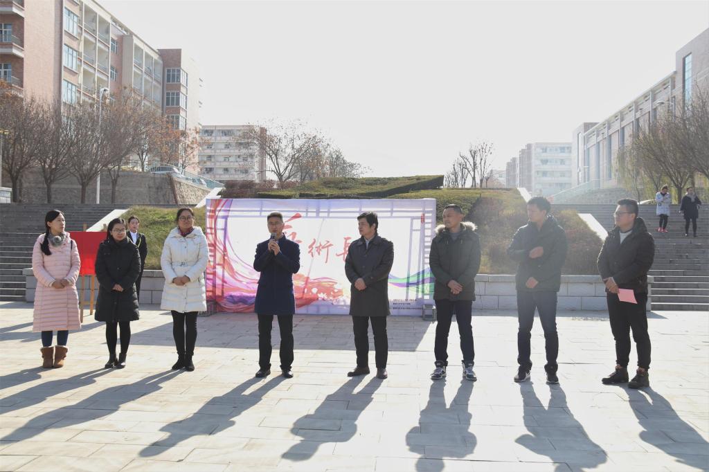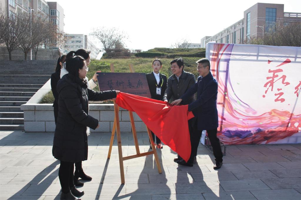 从“十二五”至今一直提倡校园文化建设工程,要形成制度、精神、文化、行为实践四大层面的校园文化建设。他强调实践是学习的重要部分,希望该活动能够成为校园文化建设的重要部分,更是起点高、持续时间长的活动。随后由王志老师和张慧老师为“艺术长廊”揭牌,并合影留念。