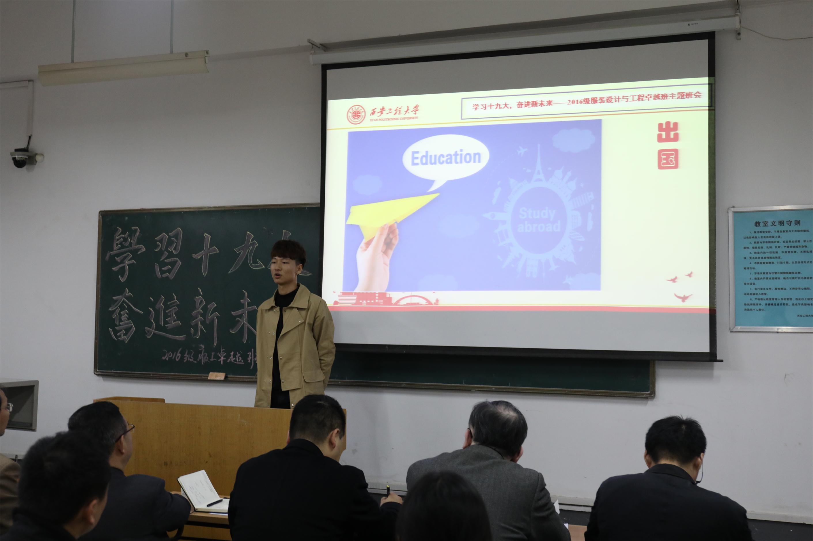 2016级服装设计与工程卓越班在临潼校区C栋教学楼480教室召开班会,班主任高岭教授、服装工程系主任冀艳波副教授参加了班会,班级心理委员张欣宇主持班会。