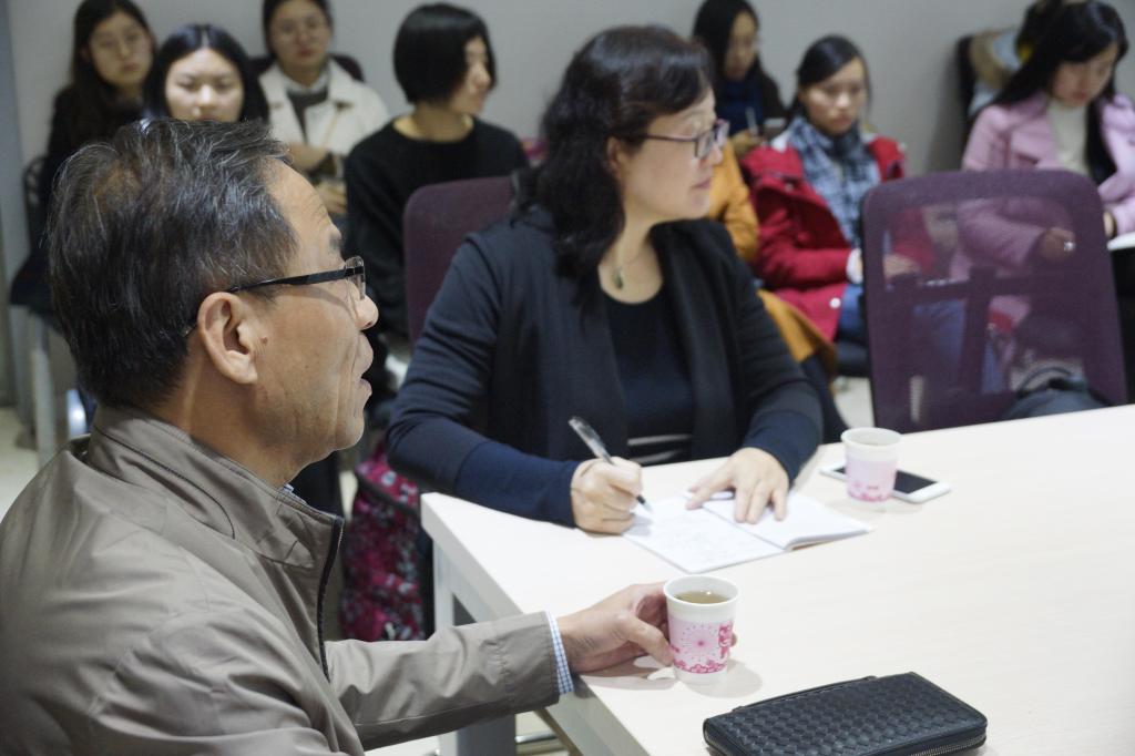 座谈会上,彭桂福先生介绍了现在国内内衣行业的基本形势,分享前期走访调研的所见所闻,并介绍了内衣行业基本形势的六个“新格局”,即行业新格局、品牌新格局、创新新格局、渠道新格局、消费新格局、商业模式新格局。其次,彭桂福先生介绍了行业对人才的基本需求,指出未来行业一专多能的复合型人才、敢于突破的创新型人才、举一反三的主动型人才、诚信正直的信用型人才、扎实肯干的实干型人才、不断进步的学习型人才、朝气阳光的正能量人才,未来将获得行业青睐并大有发展前途。使同学们受益匪浅并引发了同学们的思考。座谈会最后同学们结合自身的研究方向和工作方向向彭桂福先生悉心求教。彭桂福先生详细的回答了同学们所提出的问题,并鼓励同学们高要求的要求自己,并期待同学们未来的发展。他的精彩回答获得全场掌声。