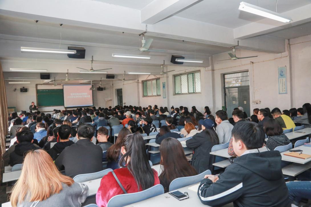 党委书记李筱胜、党委副书记胡小进、辅导员束坤翼、蔺晓珣、孙晨倩以及2014级46个班级的学生干部、宿舍舍长共计200余人参加了会议,大会由成人影视片
