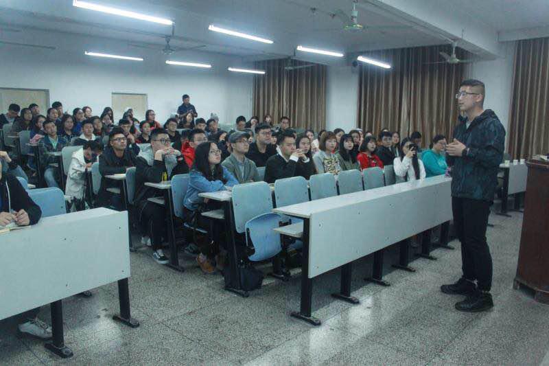 内衣系主任刘驰教授介绍了维珍妮人力资源部总监梁志峰及其他同行的四位同仁,感谢维珍妮人力资源部五位同仁在依然是公共假期中不辞辛苦从机场接回来,在酒店安排好住宿后就冒着大雨直接到学校来给同学们开会。刘驰教授接着提出了此次企业关于招聘交流分享会对同学们将来就业的重要性,并宣布分享会正式开始。