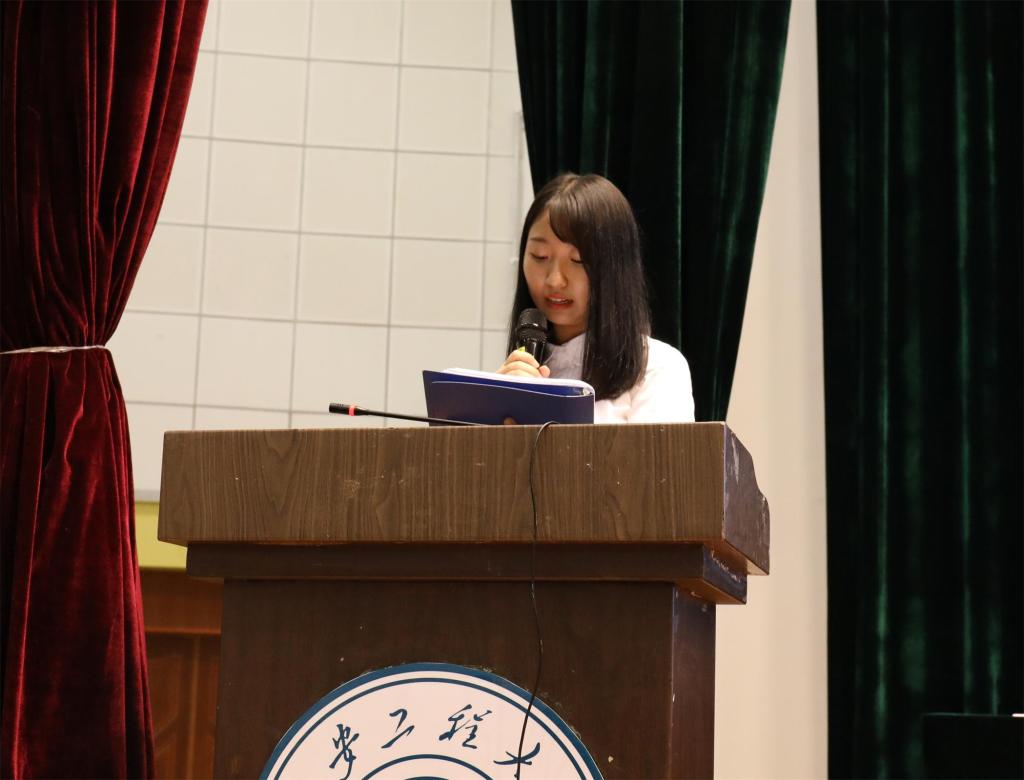 随后,各位老师为新生代表佩戴校徽、颁发学生证和学生手册。副院长吕钊向2017级同学们进行了专业介绍并就学籍管理文件重点条目进行了解说。胡小进从学业、安全、纪律、素质、团结等五个方面对学生进行了教育和要求。大会在嘹亮的成人影视片