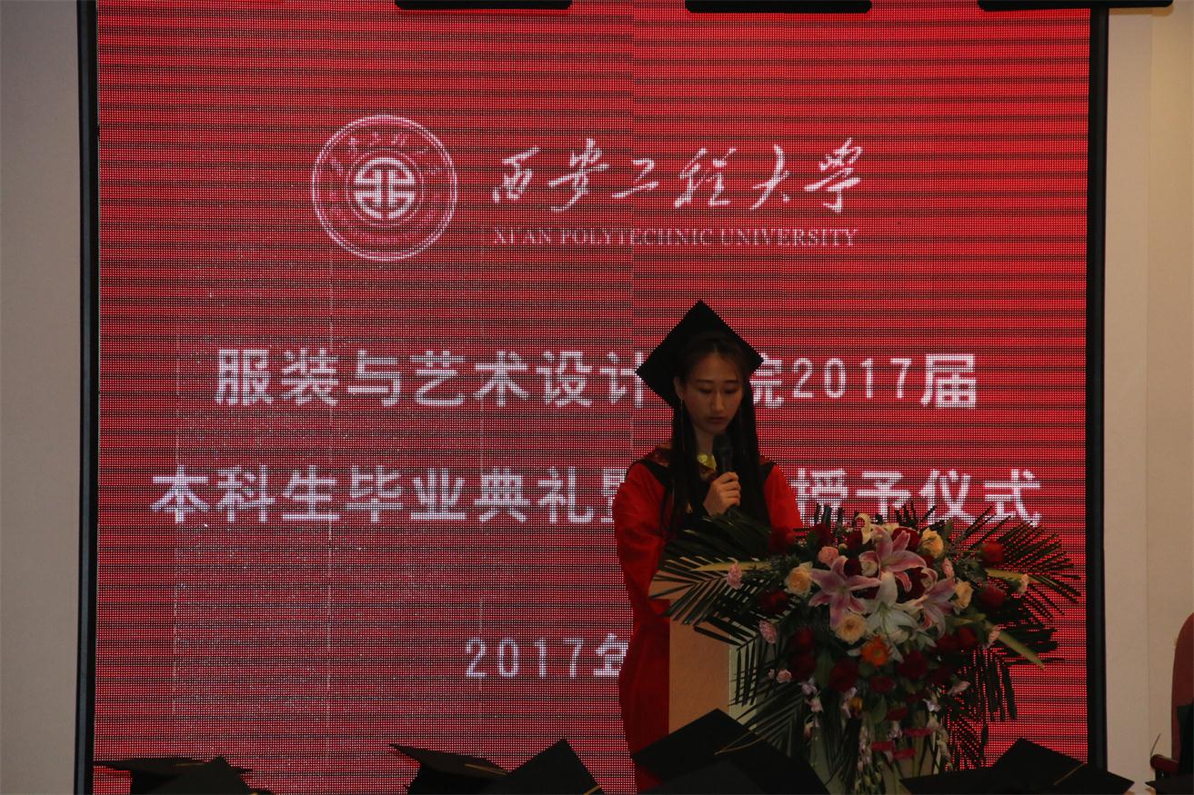 优秀毕业生代表服装表演专业任子瑜、产品设计专业孙伟一、环境设计专业王丹青分别发言,他们代表全体毕业生对所有老师在大学四年里的辛勤培育表示衷心的感谢,并表示今后一定会不负老师嘱托,继续在各自的岗位上认真学习、努力工作,成就精彩人生,用成绩向成人影视片