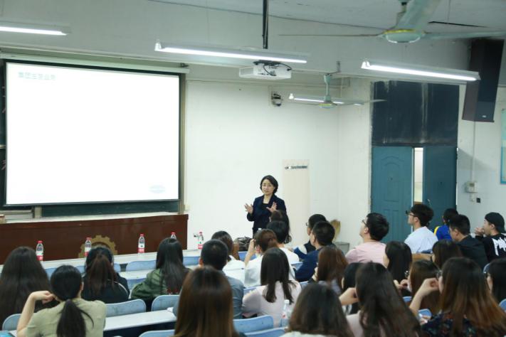 在报告会上,鹿总首先围绕着安莉芳山东生态工业园的发展和企业的文化等方面进行了介绍和分享,鹿总的个人魅力深深地折服了在场的每一位同学。鹿总凭着自己在内衣企业界积累的深厚的经验和丰富的阅历,分析了内衣市场的状况,同时向即将赴安莉芳实习的内衣班同学们提出了几点希望:第一,希望同学们扩大知识面,提升专业技能;第二,希望同学们注意把自己的所学专业知识和社会需求相结合起来,注重实际技能的培养。
