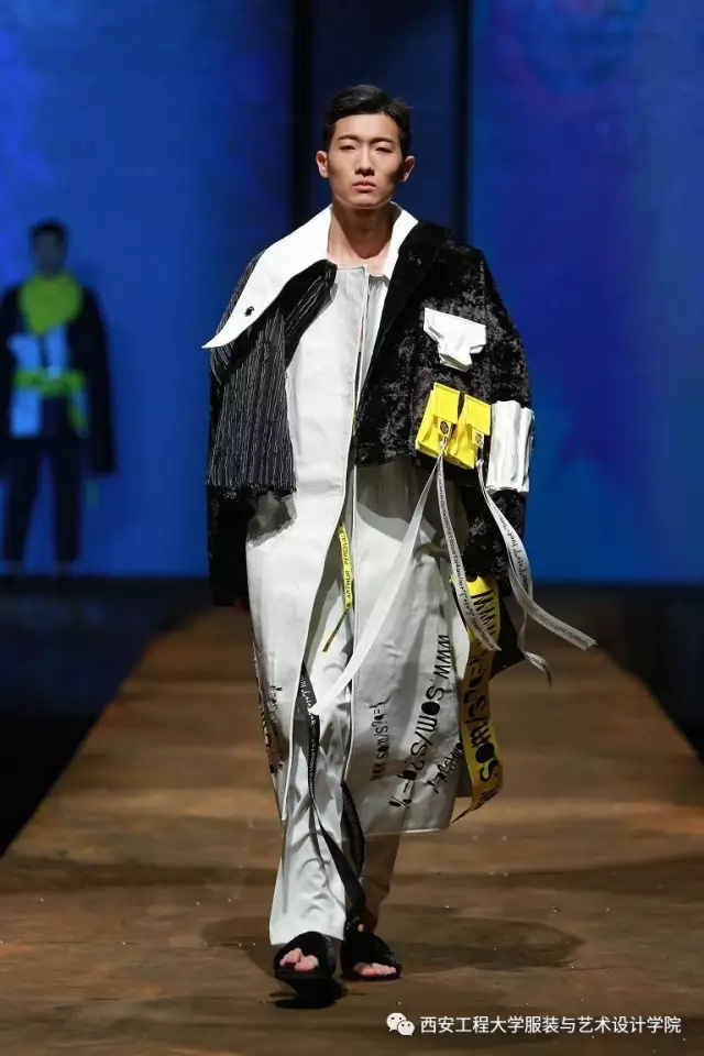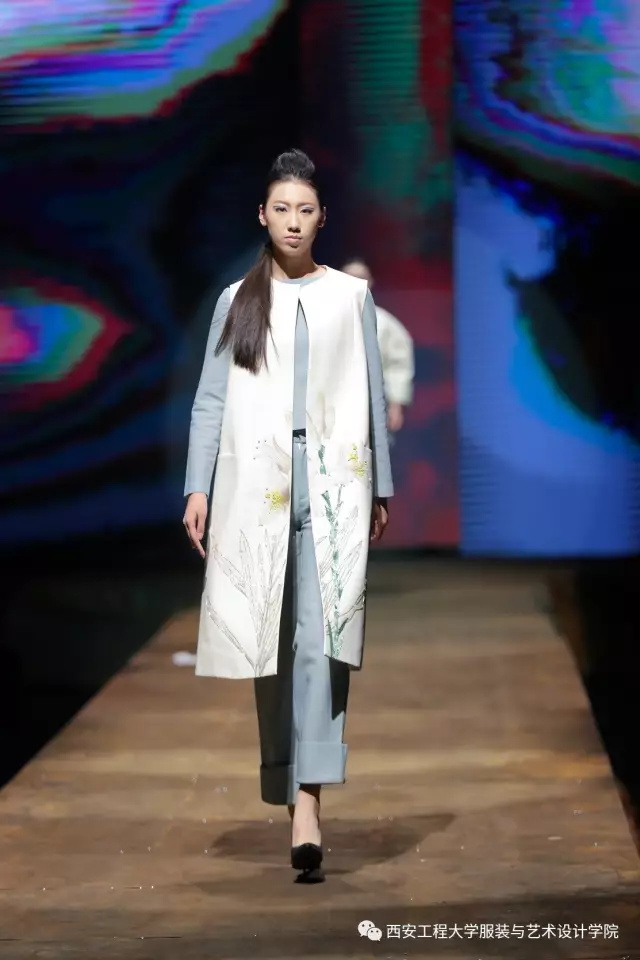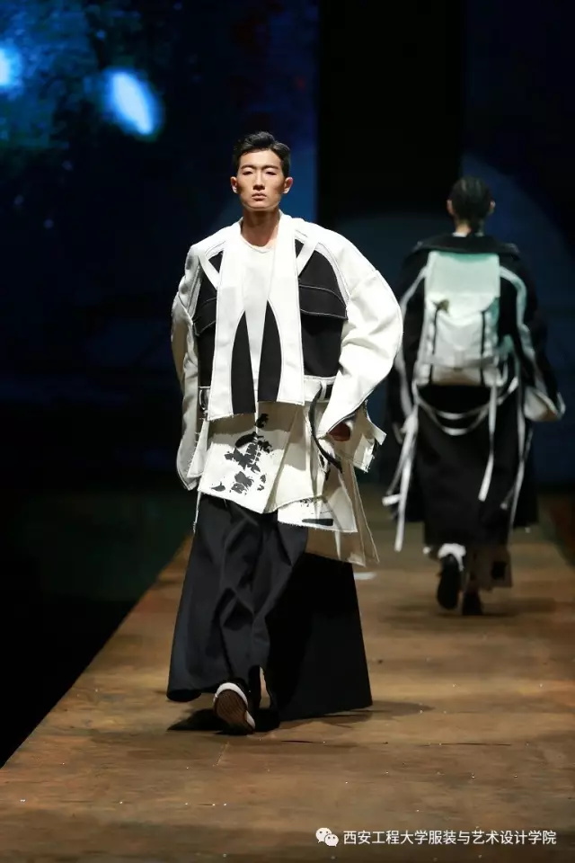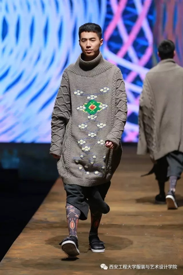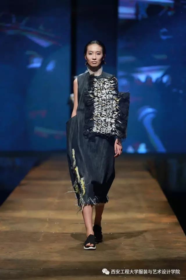 随后,进入到了比赛环节。参与本次服装设计大赛的服装设计毕业作品是从服装设计系与服装表演系近300多个系列中精选出来的30个系列近160余套优秀的毕业设计作品。本次毕业设计的主题为“丝路畅想•行走”。行走(Walking),强调了一种状态,溯源(Sourcing)、流连(Wandering)、神往(Fascinating)代表了行走过程中的不同阶段的体验,也是本次毕业设计展演的三个分主题。行走,代表了一种谦逊、低调、务实的姿态,表明在这条文化苦旅中上下求索的精神。行走,也是一种心态,表明了年轻人,在行走中进步、完善自我,且行且沉着。行走,同时也是一种浏览和阅历,是对丝绸之路文化之旅中丰富多元的人文意趣、民俗文化、民间传统工艺等的梳理与再现。
