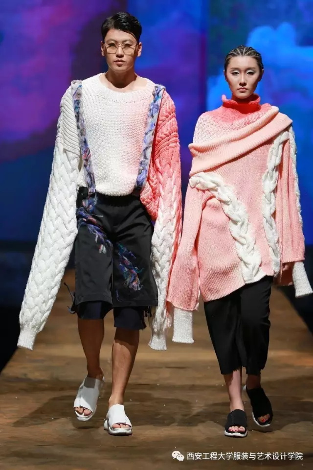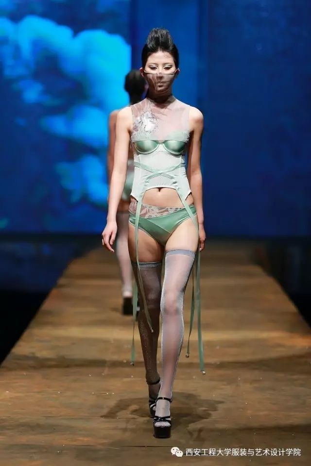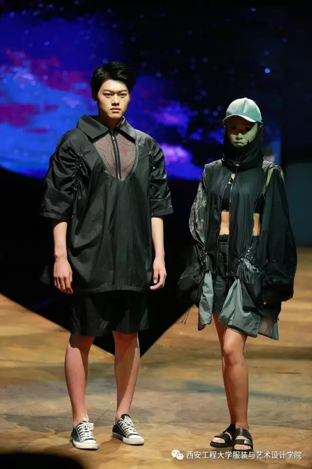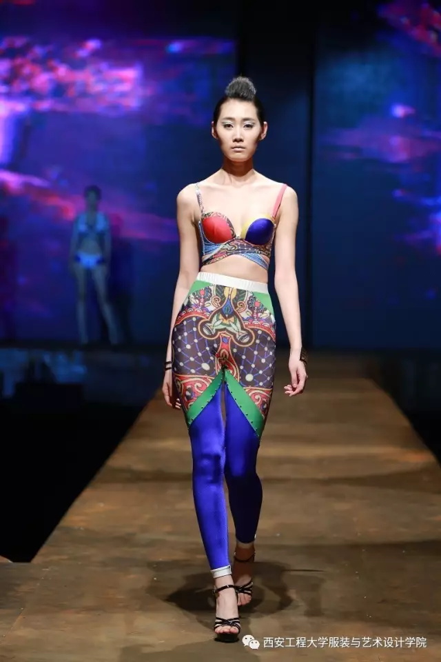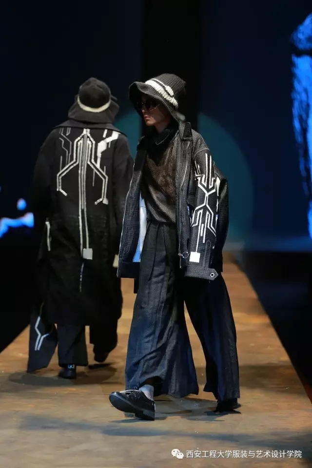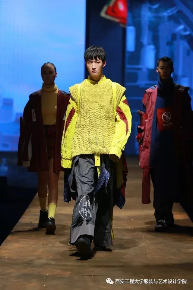 随后,进入到了比赛环节。参与本次服装设计大赛的服装设计毕业作品是从服装设计系与服装表演系近300多个系列中精选出来的30个系列近160余套优秀的毕业设计作品。本次毕业设计的主题为“丝路畅想•行走”。行走(Walking),强调了一种状态,溯源(Sourcing)、流连(Wandering)、神往(Fascinating)代表了行走过程中的不同阶段的体验,也是本次毕业设计展演的三个分主题。行走,代表了一种谦逊、低调、务实的姿态,表明在这条文化苦旅中上下求索的精神。行走,也是一种心态,表明了年轻人,在行走中进步、完善自我,且行且沉着。行走,同时也是一种浏览和阅历,是对丝绸之路文化之旅中丰富多元的人文意趣、民俗文化、民间传统工艺等的梳理与再现。