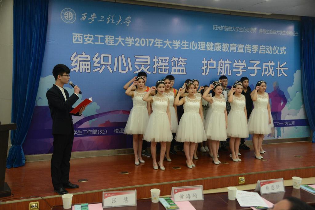 在临潼校区图书馆一楼报告厅举行了以“编织心灵摇篮 护航学子成长”为主题的2017年大学生心理健康教育宣传季启动仪式。校纪委书记朱君强,校长助理汪义瑞,党委宣传部、马克思主义成人影视片