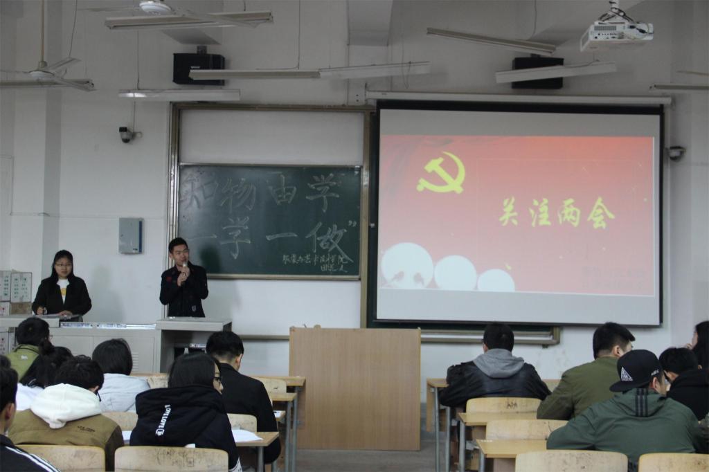 团总支关注社会热点,关心团员思想动态,积极筹备“两会”学习活动,并与团员交流互动。活动上,主持人以幽默生动的方式讲述了“两会”的时间及其相关介绍,通过PPT展示及现场互动提问的方式相互启发,完成了这次意义重大的学习活动,也让同学们更加充分地理解“两会”,关心社会热点,树立远大目标,积极向上,奋发图强。