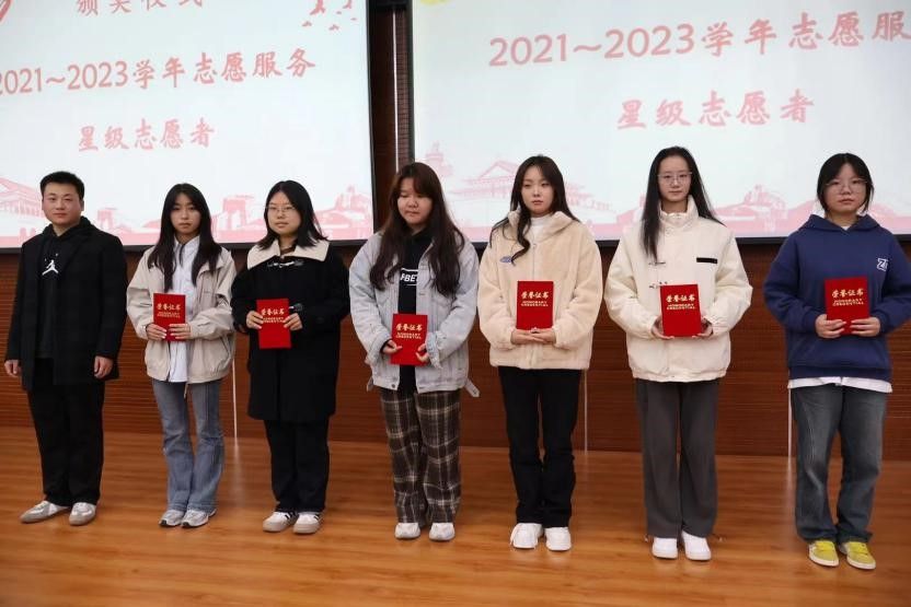 会议第二阶段颁奖仪式,由20届青协负责人穆泽林同学为优秀志愿者代表颁奖,他分别颁发了2021-2023学年志愿服务星级志愿者和2022-2023学年志愿服务“优秀志愿者”两项荣誉,表彰各位志愿者们无私的奉献。