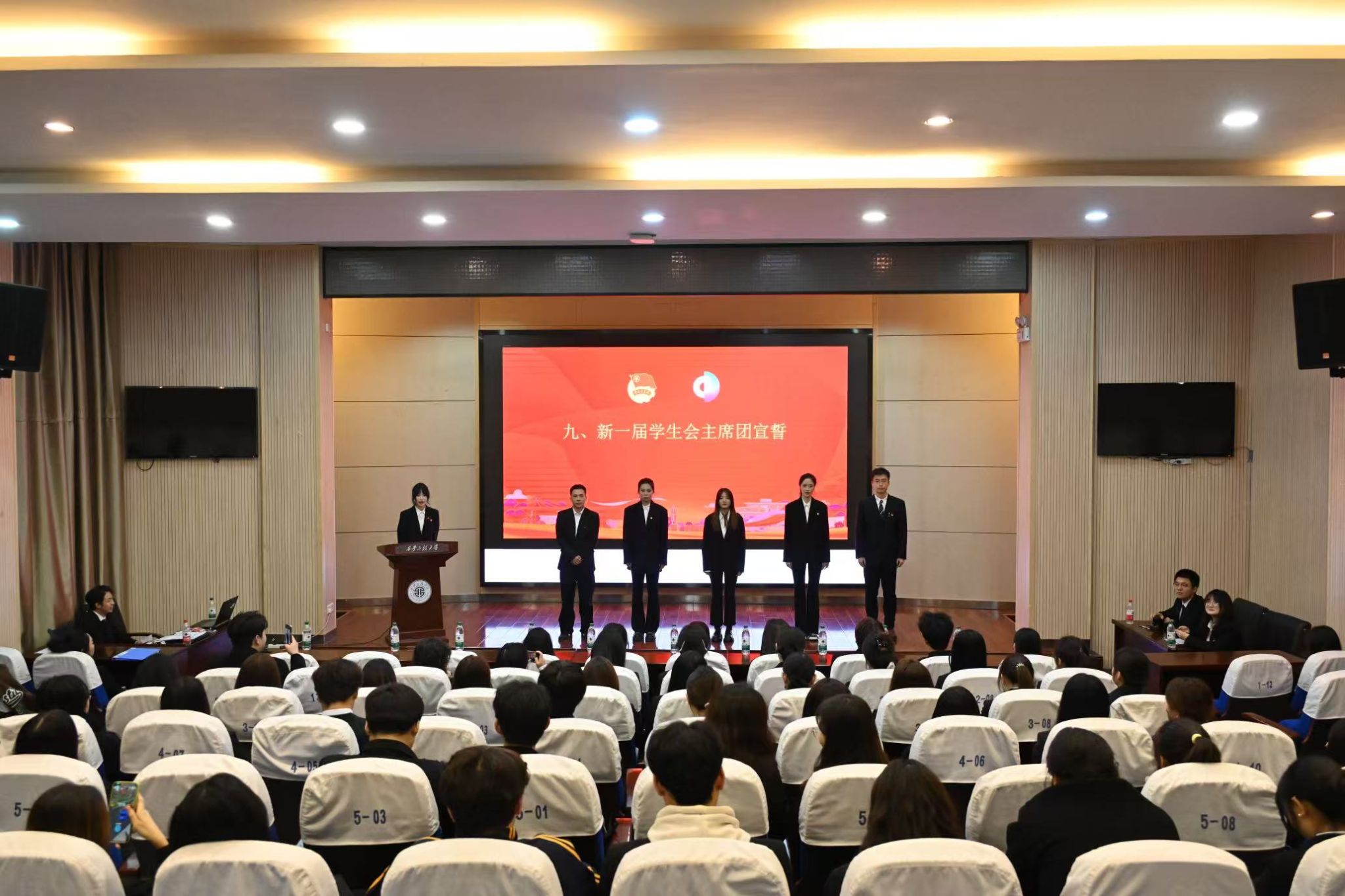 大会最后,新一届学生会主席团成员庄严宣誓,承诺将以服务同学为宗旨,履职尽责、开拓创新。现场的学生代表们认真聆听,深受鼓舞,在全场代表高唱院歌声中,大会落下帷幕。
