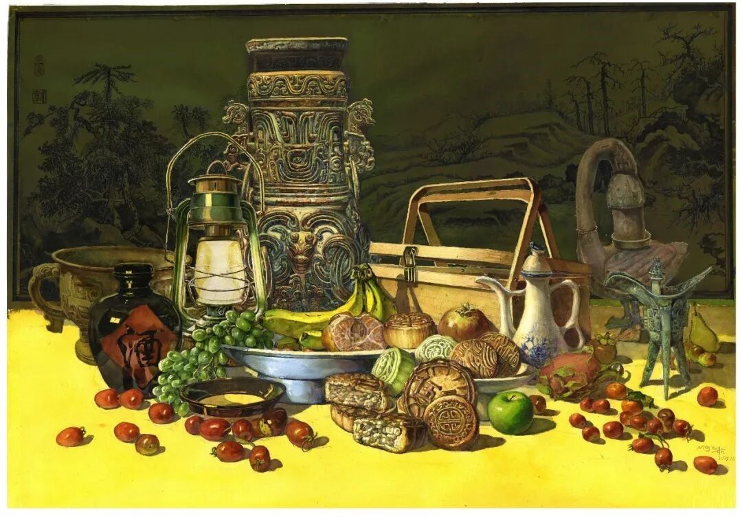 宁宇航《知守心源—中秋》水彩 120x90cm 2024