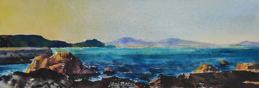 刘波《仰口海风系列》纸本水彩 35x16cmx4