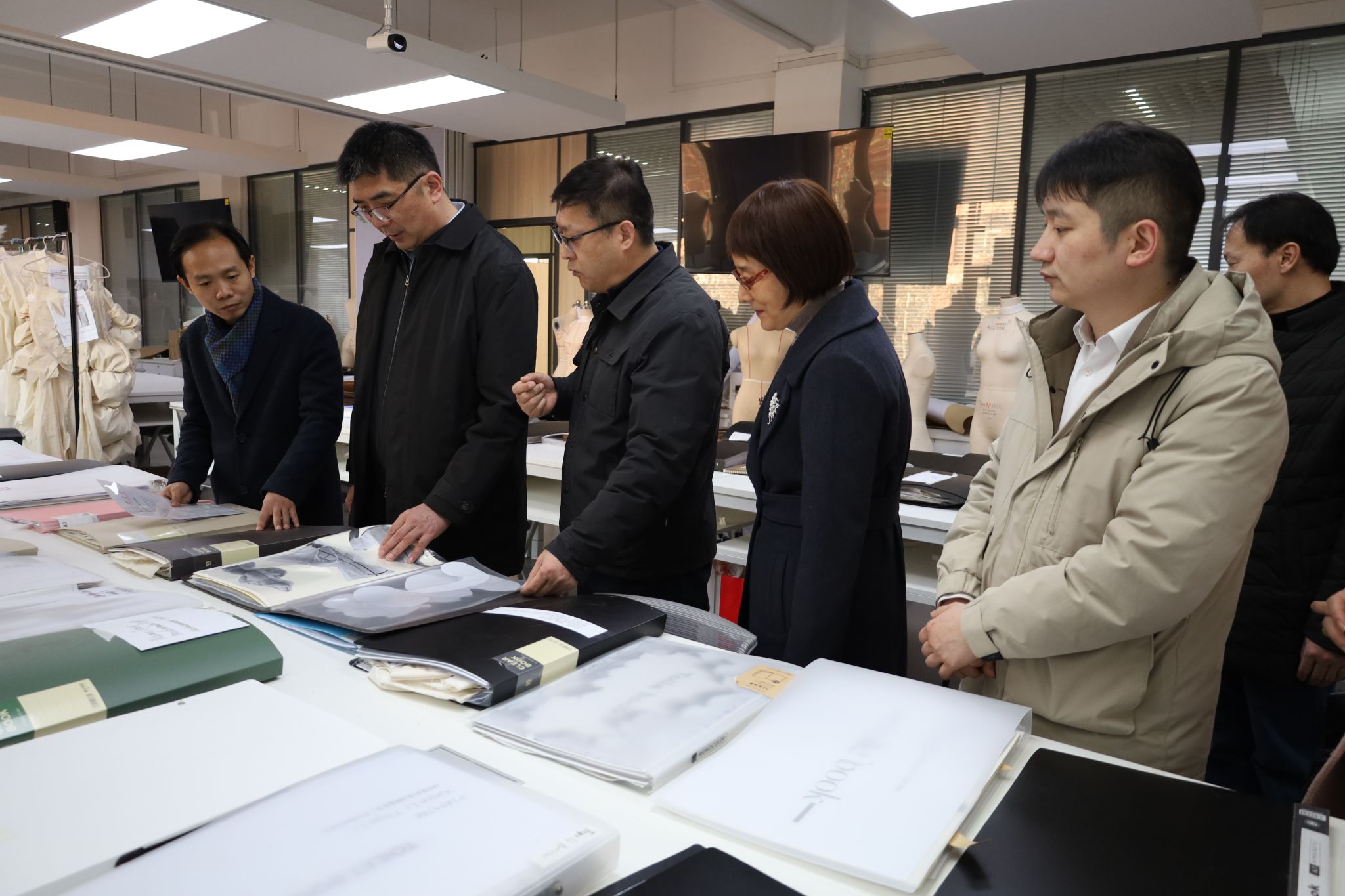 会前,校领导先后实地走访查看了解了中英合作办学项目、专业实验室、画室和服装工程技术中心等实际运行和使用情况,参观了师生作品静态展示,听取了成人影视片