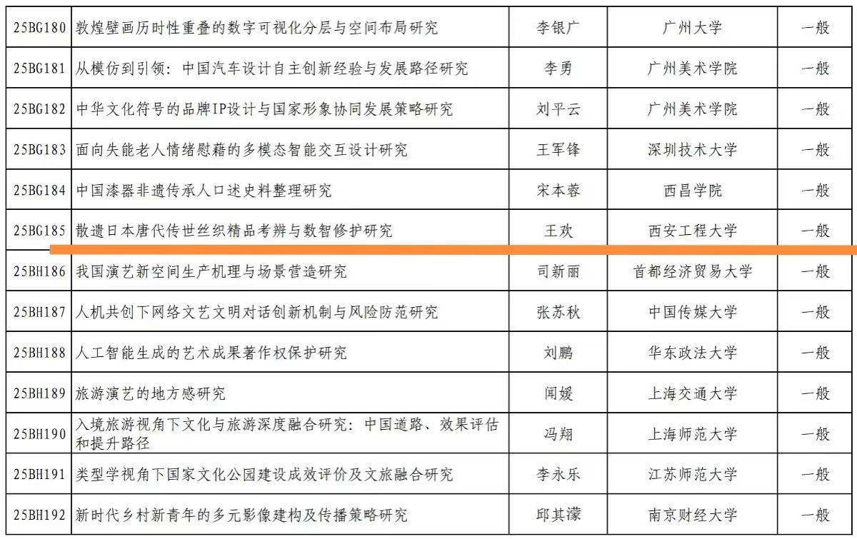 王欢副教授申报的《散遗日本唐代传世丝织精品考辨与数智修护研究》成功获批一般项目,实现我院在该高级别科研项目上的重要突破。